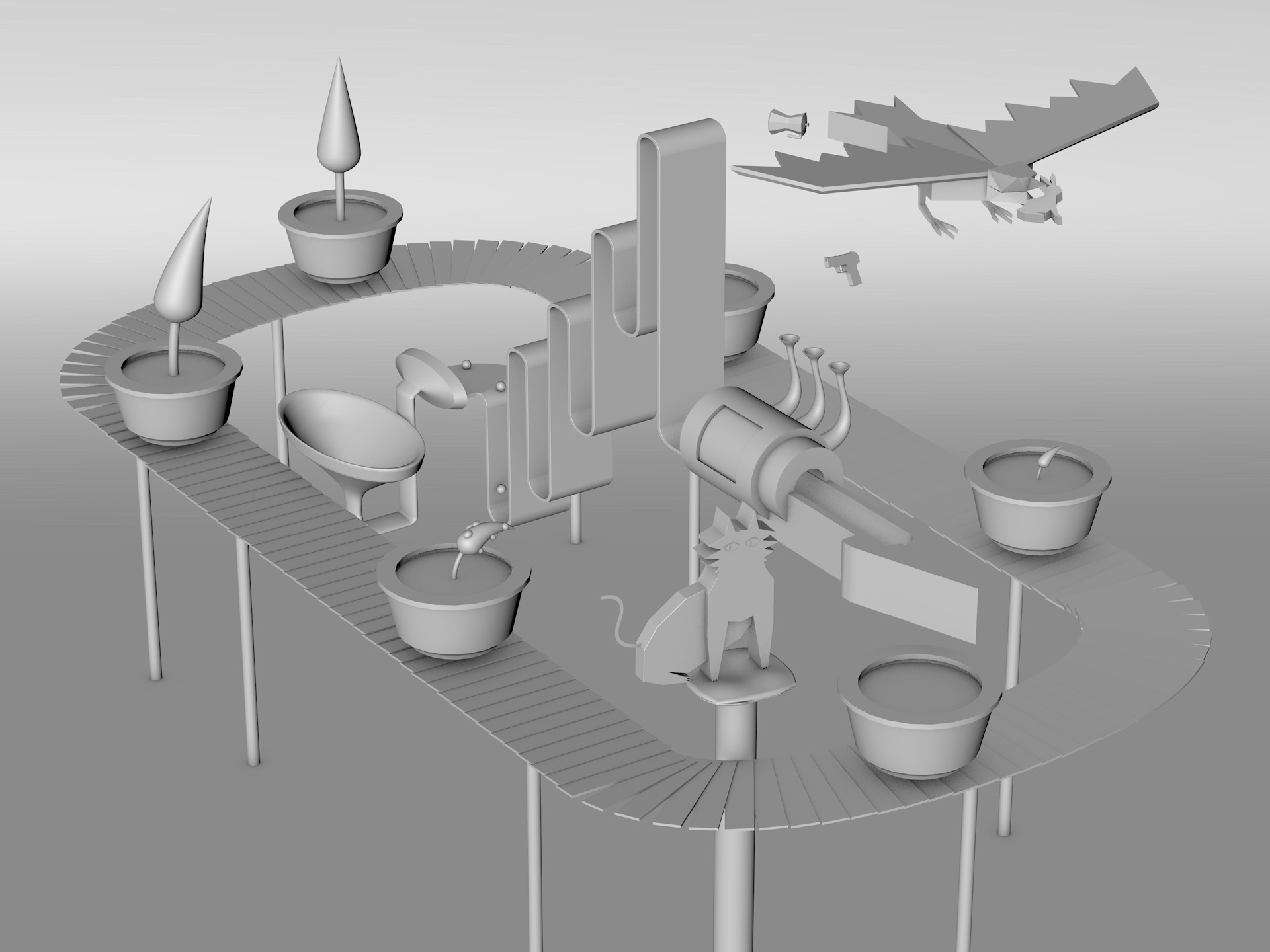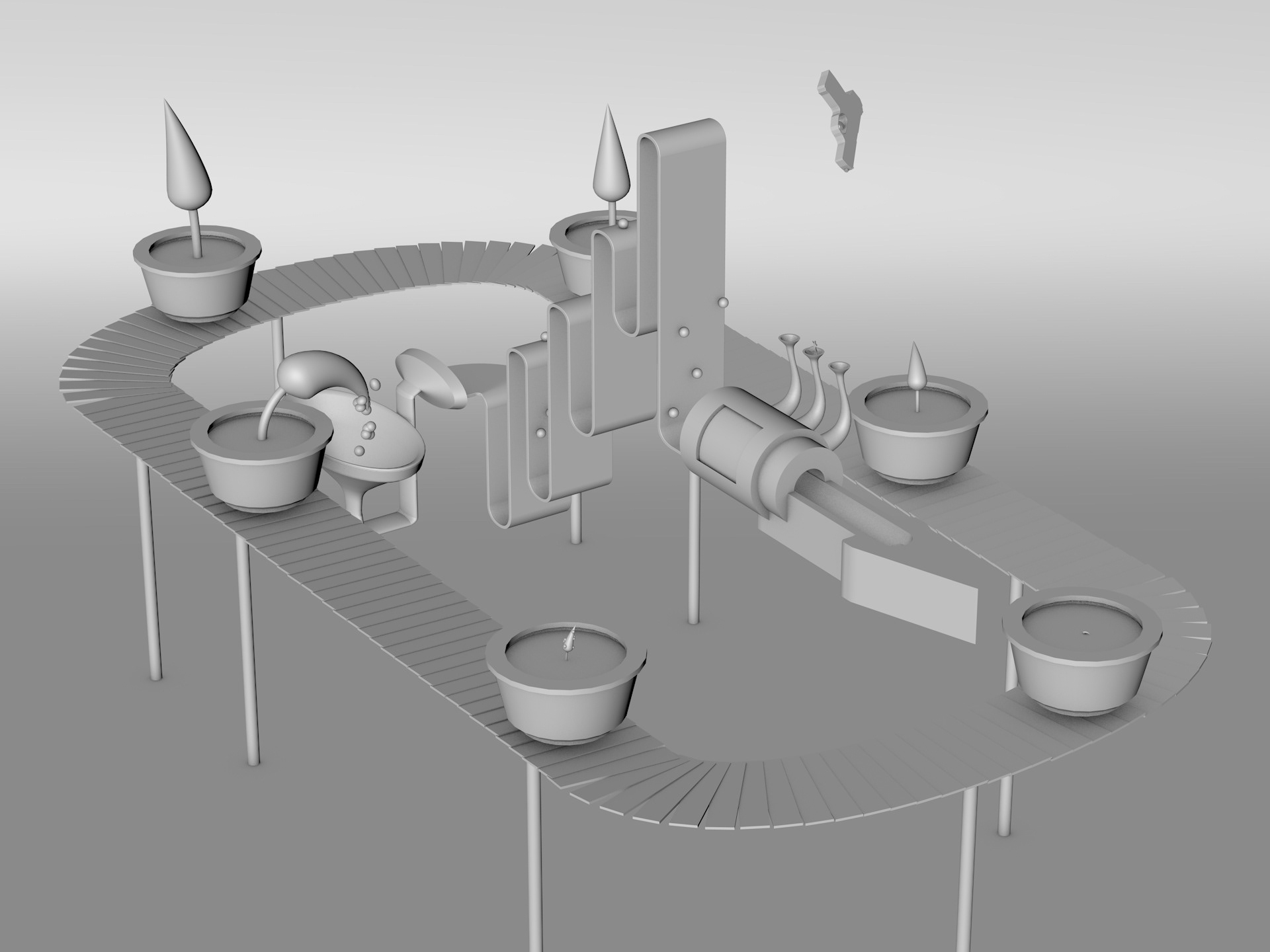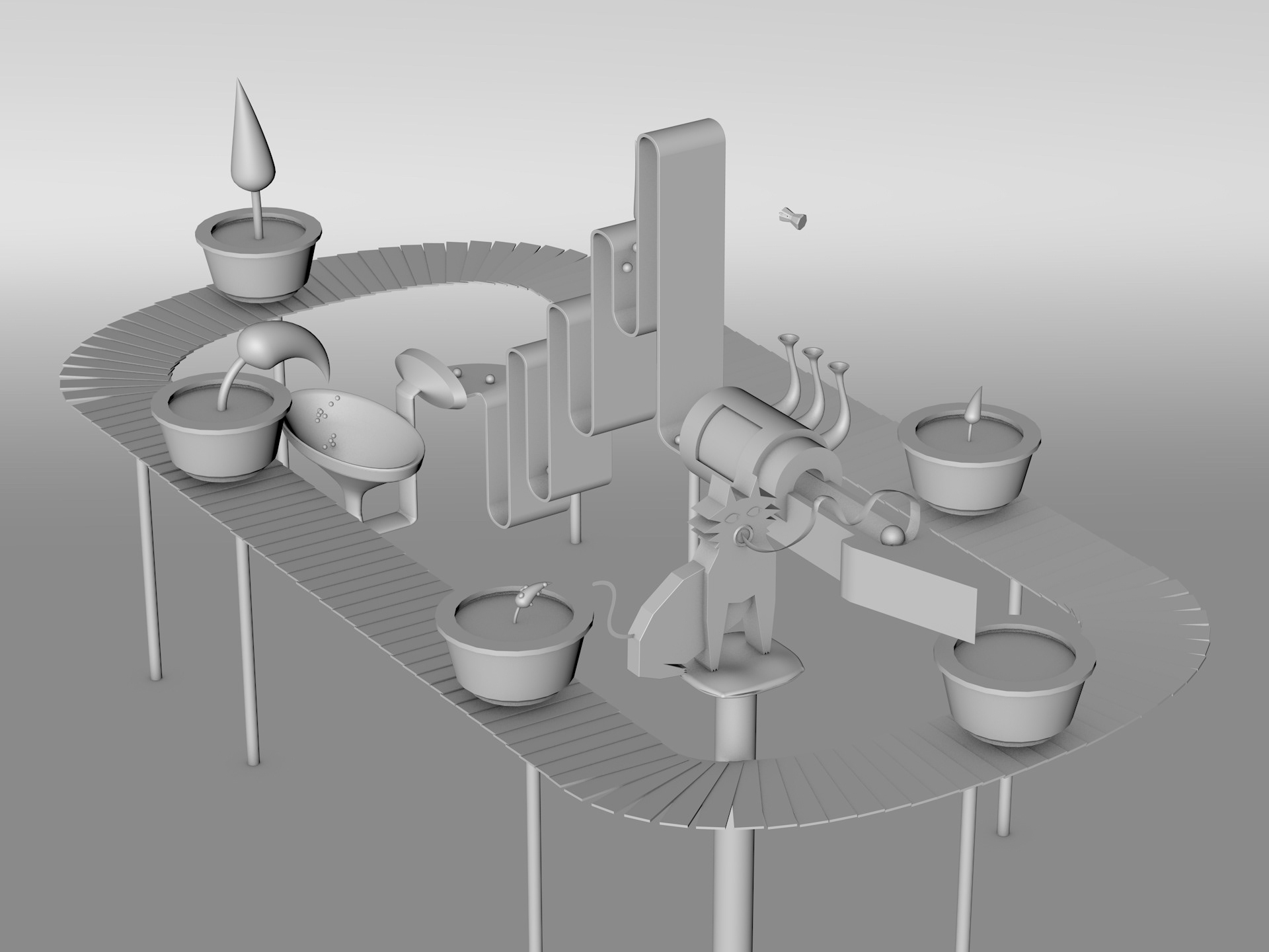 School proyect. Cinema 4D. Loop with machines, plants and animals. Corona Render.